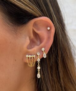 Kit Perforación Piercings en Casa Circón Bañada en Oro 24kt