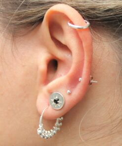 Nunca pasan de moda, puedes usarlas en los agujeros de los lobulos una en cada oreja o mezclalas, pero tambien si tiene Helix o Snug se ven muy bien. Mira nuestro Blog Piercing.
