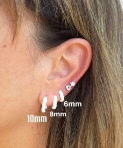 ácero quirúrgico bañado en plata 925, 6 mm de diámetro interno, con cierre click. Par