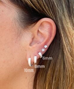 Argollas de acero quirúrgico bañado en plata 925, 8 mm de diámetro interno, con cierre click. Par