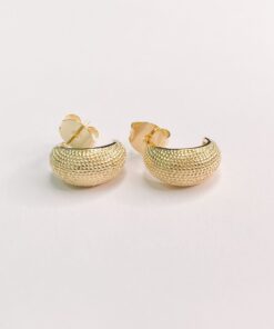 Aros tipo argollas, apegadas en acero quirúrgico bañado en oro 18 kt 5 micras, con tornillo mariposa.