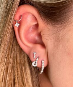 Argolla mini con circulo con circones, perfecta poara usarla sola o acompañada, en cualquiera de tus perforaciones de lóbulo.