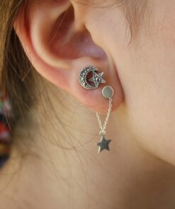Aro con cadena y estrella colgante. Muy delicados, los puedes acompañar aros mini o argollas pequeñas