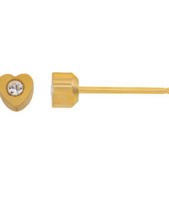 Aro abridor de acero quirurgico bañado oro de 24kt, mini corazon con circon, Precio por par.