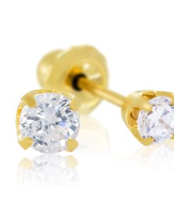Par de Aros Circón de 3mm Acero Quirúrgico Bañado en Oro 24 kt Libre de Níquel