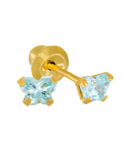 Aro abridor mariposa, piedra agua marina Baño de oro 24 kt. Precio por par