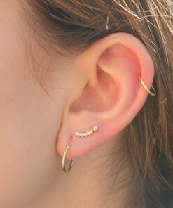 Este mini aro viste tu oreja de una manera increible, con destellos de circones en blanco, hermoso.